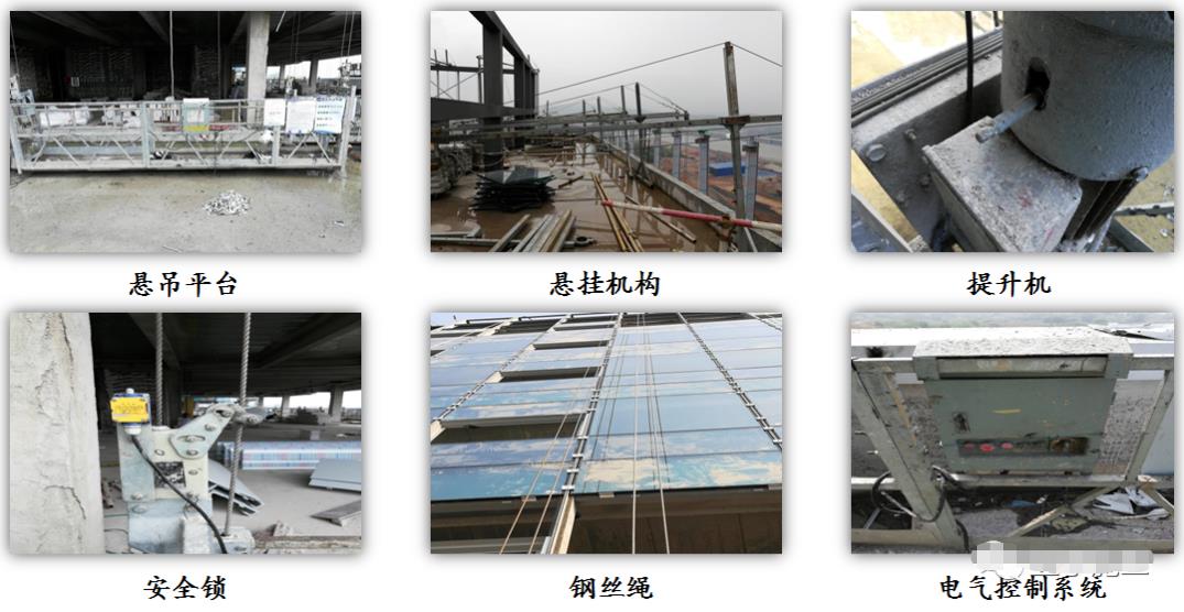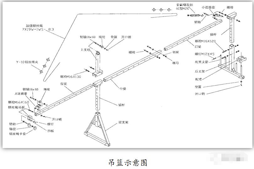 2、高處作業(yè)吊籃構(gòu)造 懸吊平臺、懸掛機構(gòu)、提升機、安全鎖、鋼絲繩、電氣控制系統(tǒng)六部分組成。