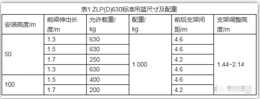 5、高處作業(yè)ZLP630吊籃尺寸及配重 目前市場上通常采用的吊籃有ZLP(D)630, ZLP(D)800, ZLP(D)1000型號。表1為ZLP(D)630標準吊籃尺寸及配重情況。