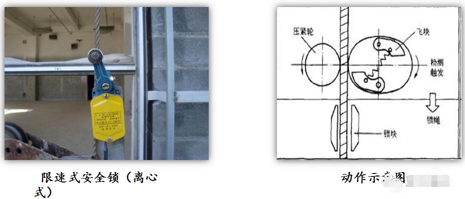 8、高處作業(yè)吊籃安全鎖 安全鎖按其工作原理,可分為離心觸發(fā)式和擺臂防傾式兩類。 離心觸發(fā)式:當?shù)趸@的下降速度超過一定數(shù)值,飛塊產(chǎn)生的離心力克服彈簧的約束力向外甩到一定程度時,觸動等待中的執(zhí)行元件,帶動鎖繩機構(gòu)動作,將鎖塊鎖緊在安全鋼絲繩上。