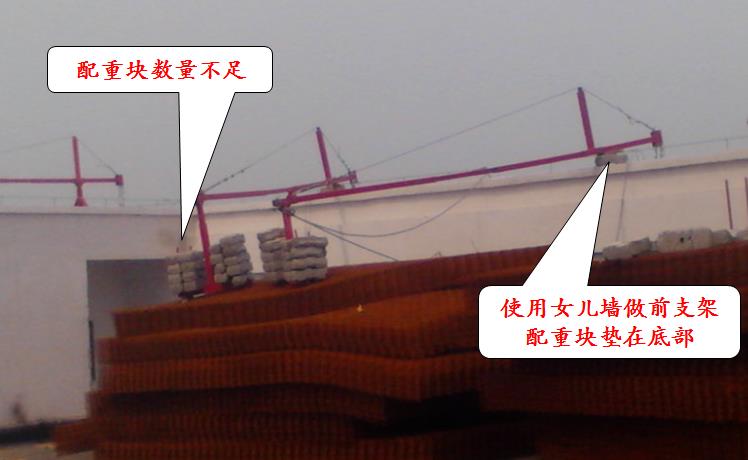 嚴禁使用破損的配重塊或其他替代物;配重塊應(yīng)固定可靠,重量應(yīng)符合設(shè)計規(guī)定。