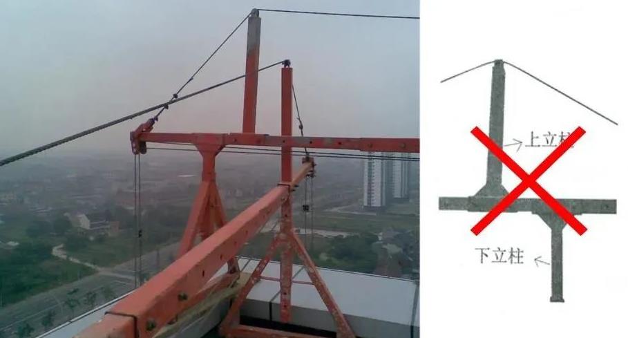 ▲吊籃前支架與上立柱未處于同一垂直線,錯誤