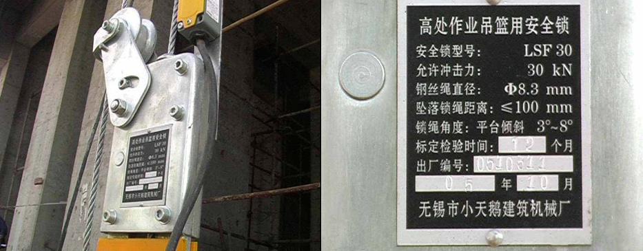 吊籃應(yīng)安裝防墜安全鎖,銘牌清晰,鎖具靈敏有效,安全鎖不應(yīng)超過標定期限。吊籃應(yīng)安裝上限位裝置,并應(yīng)保證限位裝置靈敏可靠。