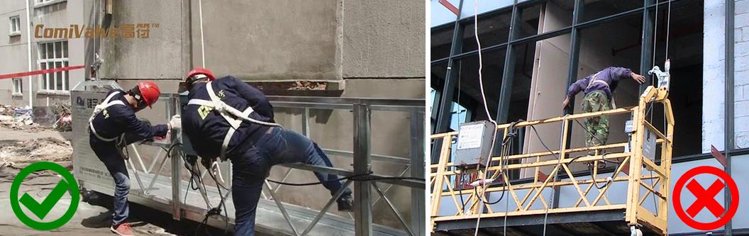 嚴禁將吊籃用作垂直運輸設(shè)備。作業(yè)人員應(yīng)從地面上下吊籃,嚴禁從窗戶、洞口上下吊籃。