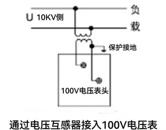 不過這種機械式指針式電壓表對安裝位置的耐振動和沖擊的影響是有要求的: 安裝位置→儀表適用垂直安裝,允許傾斜±5°; 存儲溫度→規(guī)定在-40℃~ +70℃; 阻尼時間→小于4s(槽型表小于6s); 工作環(huán)境→參比溫度為23℃±2℃,相對溫度40 ~ 85%;工作環(huán)境溫度極限為-40℃+ 60℃,相對溫度不超過95%,且空氣中無灰塵和腐蝕性氣體; 絕緣強度→能承受頻率為50Hz的正弦波交流2KV電壓1分鐘的耐壓試驗,施加直流電壓500V時的絕緣電阻≥5MΩ。 這種高壓電壓表為了安全,必須配置10/0.1KV高壓電壓互感器使用的,見下圖所示