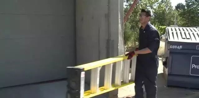 搬運梯子時,使梯子頂端向前,這樣便于放置。